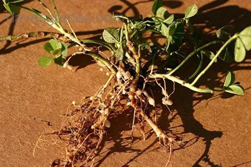 (白车轴草的根部,上面的小球球就是与固氮菌共生的菌根。 来源:davesgarden.com)