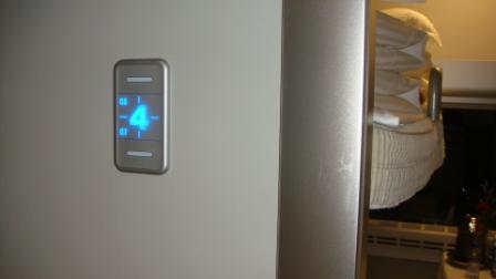卧室里有平板式电视,有室温调控开关。门口的房号是电子荧光显示板,清晰明了。过道两头的门也是平移的且按钮可控的,很方便。高包车厢的一头有会客厅,很宽敞,约有五平方米。L型转角沙发可坐六七人,长条茶几上,摆放着鲜花。列车长和列车员的着装很优雅得体,是紫罗兰色无领时装,里着白衬衣,围戴淡紫小方巾,加上紫色的橄榄帽。气质淑惠,语调温和,举止雅致。好像想起坐飞机时,与空姐的印象比,得分还高一些。也许,坐火车本来就从容,不要安全检查,空间又宽敞,人的活动自由度大。因此,连对列车员的感觉也比空姐好了。