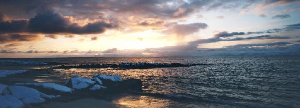 挪威朗依尔贝海上黎明时淡紫色的晨曦