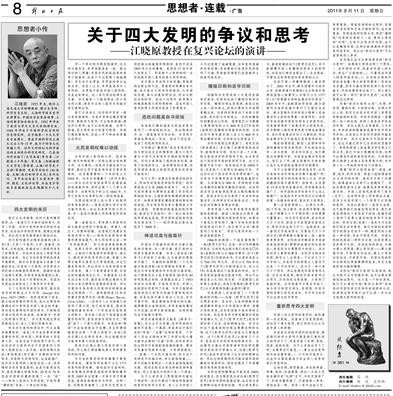 我们刚才看到了,中国人四大发明的发明权,虽然遇到一点点挑战,但基本上还是稳固的,对这四个伟大发明,我们仍然可以认为是中国人的骄傲。