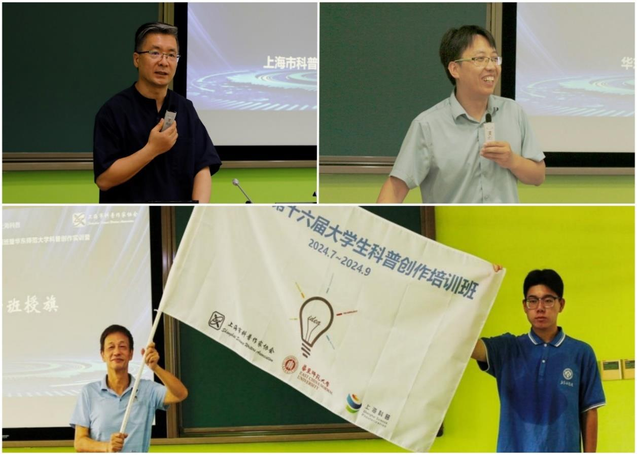 2024 年 7 月 7 日,上海市第十六届大学生科普创作培训班暨华东师范大学科普创作实训营在华东师范大学闵行校区第一教学楼开营。本次活动由上海市科普作家协会和华东师范大学共同举办,由华东师范大学教务处、孟宪承书院、科学教育研究与教学中心、大学生学业发展与指导中心共同承办。上海市科普作家协会原副理事长、秘书长江世亮,上海市科普作家协会副理事长、秘书长董长军,华东师范大学科学教育研究与教学中心执行主任裴新宁,华东师范大学教务处处长助理吴平颐,上海市科普作家协会理事、华东师范大学孟宪承书院副院长、培训班班主任苏振兴,华东师范大学教师教育实验教学中心王华文,以及本届培训班全体 44 名学员,共同参加了开班仪式。