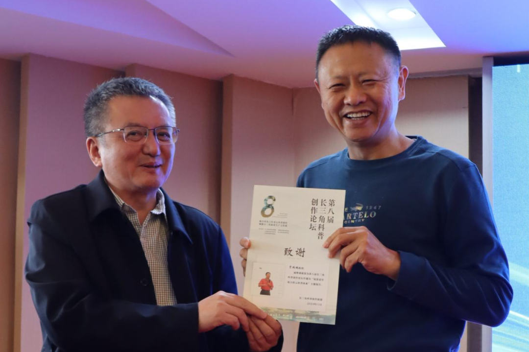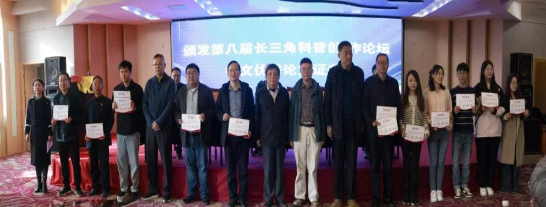 论坛还举行了颁奖仪式和授牌仪式。上海市科普作家协会理事长吴家睿、江苏省科普作家协会副理事长冯伟民、安徽省科普作家协会副理事长刘晨为论坛征文获选者颁发了优秀论文证书;联盟四位秘书长为“长三角科普创作联盟摄影采风基地”“长三角科普创作联盟研学采风基地”授牌。