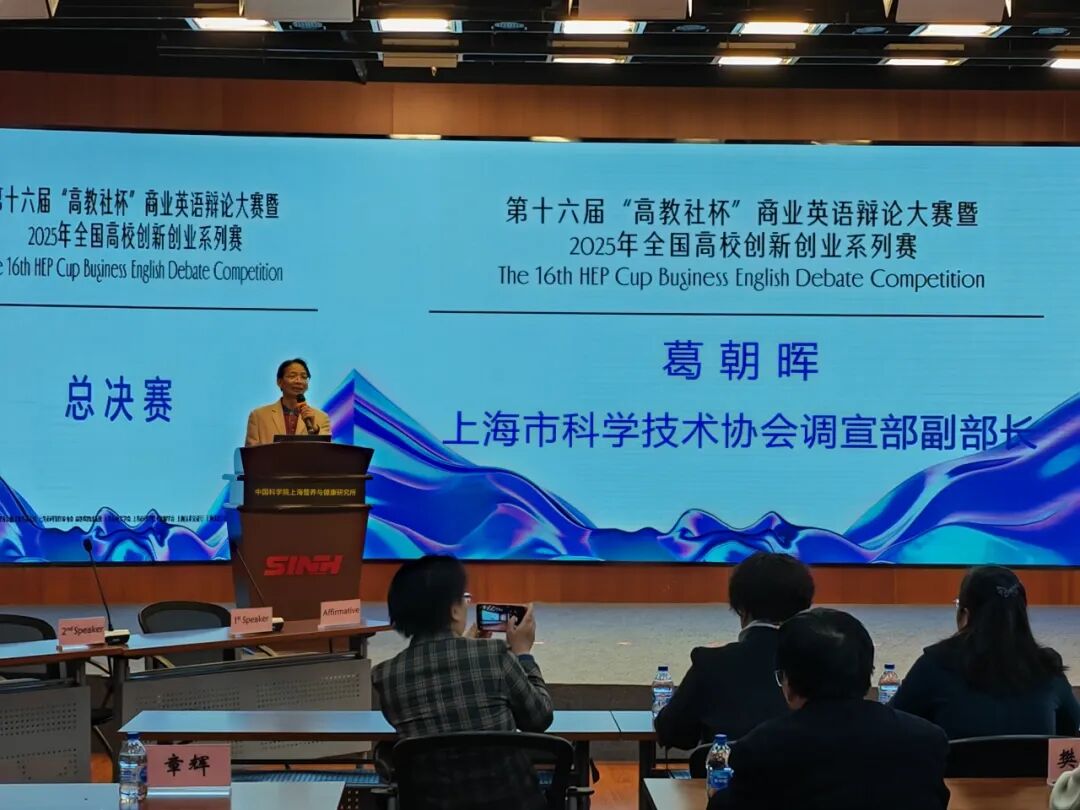 当阳光穿过指缝,感受初冬季节特有的温度与光芒之际,由中国翻译协会翻译服务专业委员会指导,上海市科普作家协会、高等教育出版社、上海市外文学会、上海市科学技术情报学会、上海技术交易所、上海市信息服务外包发展中心、“商业英语辩论”公众号等单位主办的第十六届“高教社杯”商业英语辩论大赛暨2025年全国高校创新创业系列赛总决赛于2025年11月29日和30日在上海应用技术大学徐汇校区和上海岳阳路319号信息中心明德厅隆重举行。本届大赛以“创新、创业、国际化”为主题,以上海应用技术大学化妆品特色专业作为行业背景,结合护肤品出海及行业关注的相关问题,以创新创业教育为依托、以国际化人才培养为目标,以赛促学、以赛促练的培养模式展开。大赛旨在强化学生创新创业意识,拓展国际视野,提升参赛选手的思辨分析、逻辑思维、语言表达、临场应变及团队协作等综合能力,提高学生职业素养和就业水平。