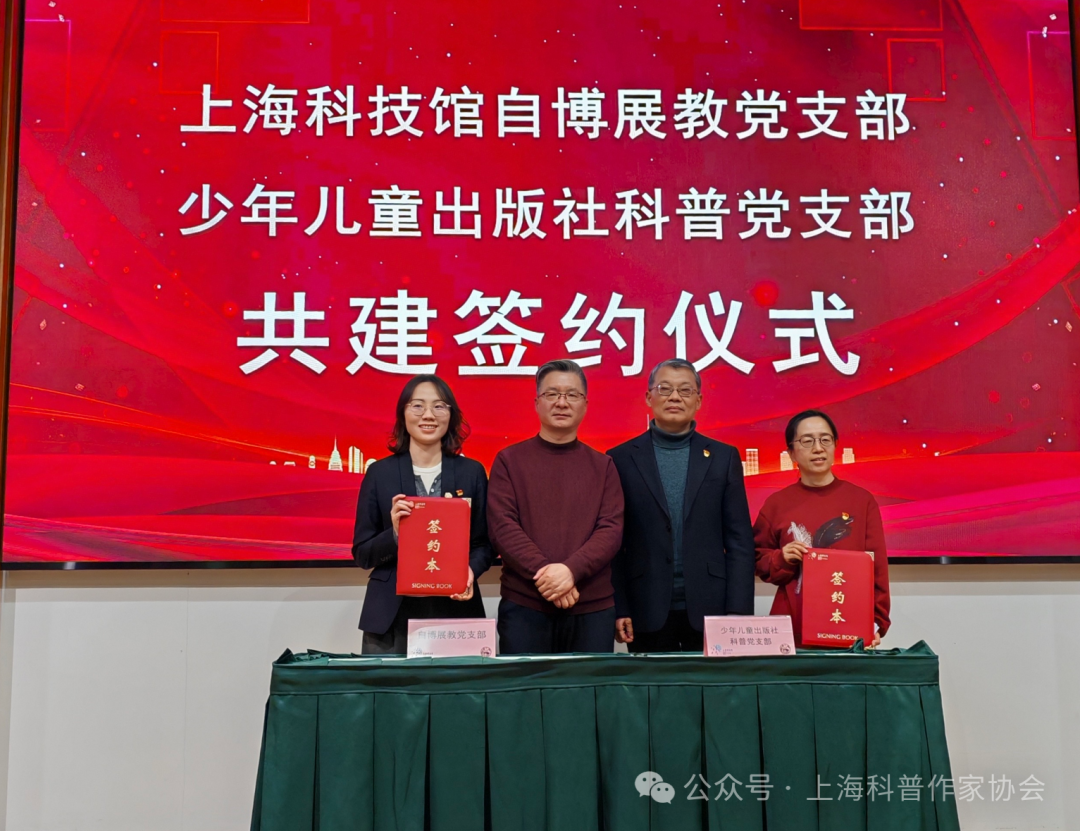 活动伊始,自博展教党支部书记刘楠与少年儿童出版社科普党支部书记王音共同签署了党建共建协议,中国科普作家协会常务理事洪星范和上海市科普作家协会副理事长董长军作为特邀嘉宾出席。此次签约标志着各方将以党建为纽带,正式开启资源共享、优势互补的新阶段。主办方代表王音、刘楠在致辞中强调,将持续以党建引领深化跨领域协作,着力构建常态化、可持续、可落地的科普交流生态,持续打造原创优质作者库,为合作期刊与图书编辑部指定一对一联络人,将合作落在实处。
